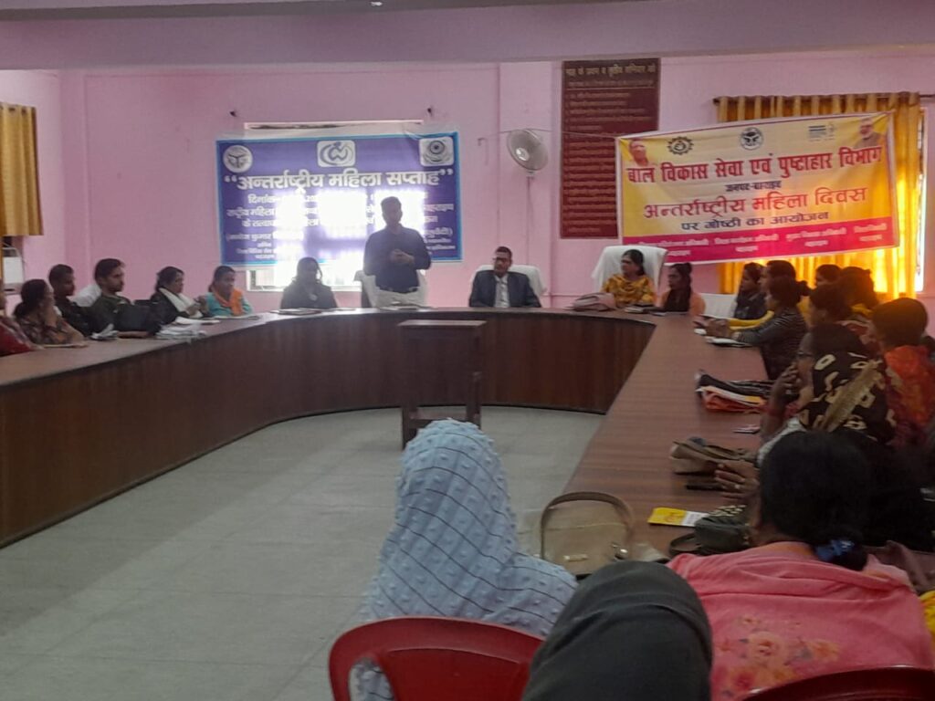 बहराइच 06 मार्च। अन्तर्राष्ट्रीय महिला सप्ताह के उपलक्ष्य में शनिवार को मा. राष्ट्रीय विधिक सेवा प्राधिकरण व उ.प्र. राज्य विधिक सेवा प्राधिकरण के निर्देशानुसार जिला विधिक सेवा प्राधिकरण के अध्यक्ष/जनपद न्यायाधीश उत्कर्श चतुर्वेदी के दिशा निर्देशन में तहसील सदर बहराइच के सभागार में जिला विधिक सेवा प्राधिकरण, बहराइच के सचिव मनोज कुमार मिश्रा की अध्यक्षता में महिला जागरूकता कार्यक्रम सम्पन्न हुआ। जिसमें नायब तहसीलदार मनीष, सेवा प्राधिकरण द्वारा नामित रिर्सोस पर्सन माधुरीलता मिश्रा एवं श्रीमती पैकर जमाल, प्रोबेशन कार्यालय के अधिकारी कर्मचारी, वन स्टाप सेन्टर की प्रबन्धक तथा बड़ी संख्या में आंगनबाड़ी कार्यकत्री, शिक्षिकाएं व आशा बहु मौजूद रहीं।