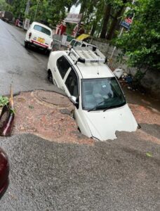 लखनऊ वज़ीरगंज के अंतर्गत क्रिश्चन कॉलेज रेड गेट के पास धसी सड़क। बलरामपुर हॉस्पिटल के पास सड़क धसने से हुआ...
